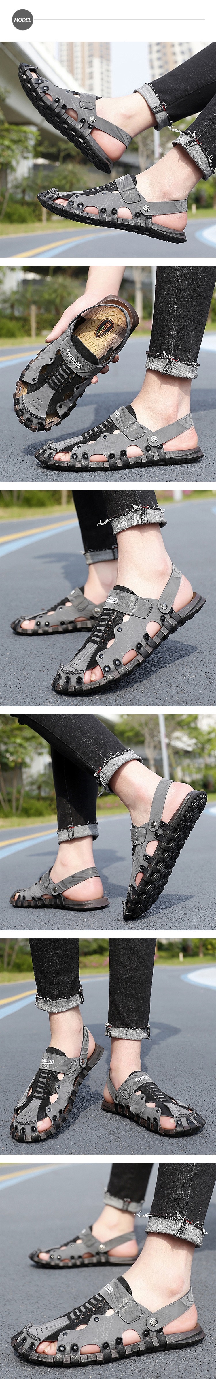 【KIRON】拖鞋 涼鞋/兩穿法設計縷空編織飾帶造型涼拖鞋- 男鞋 灰