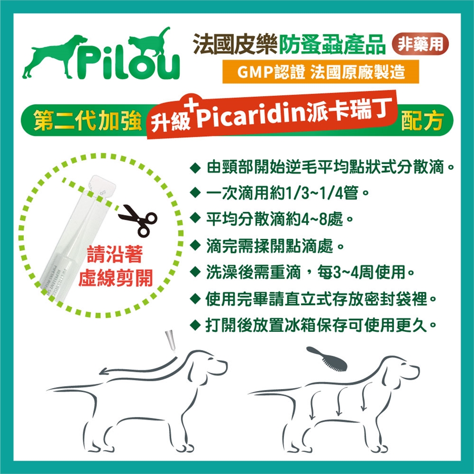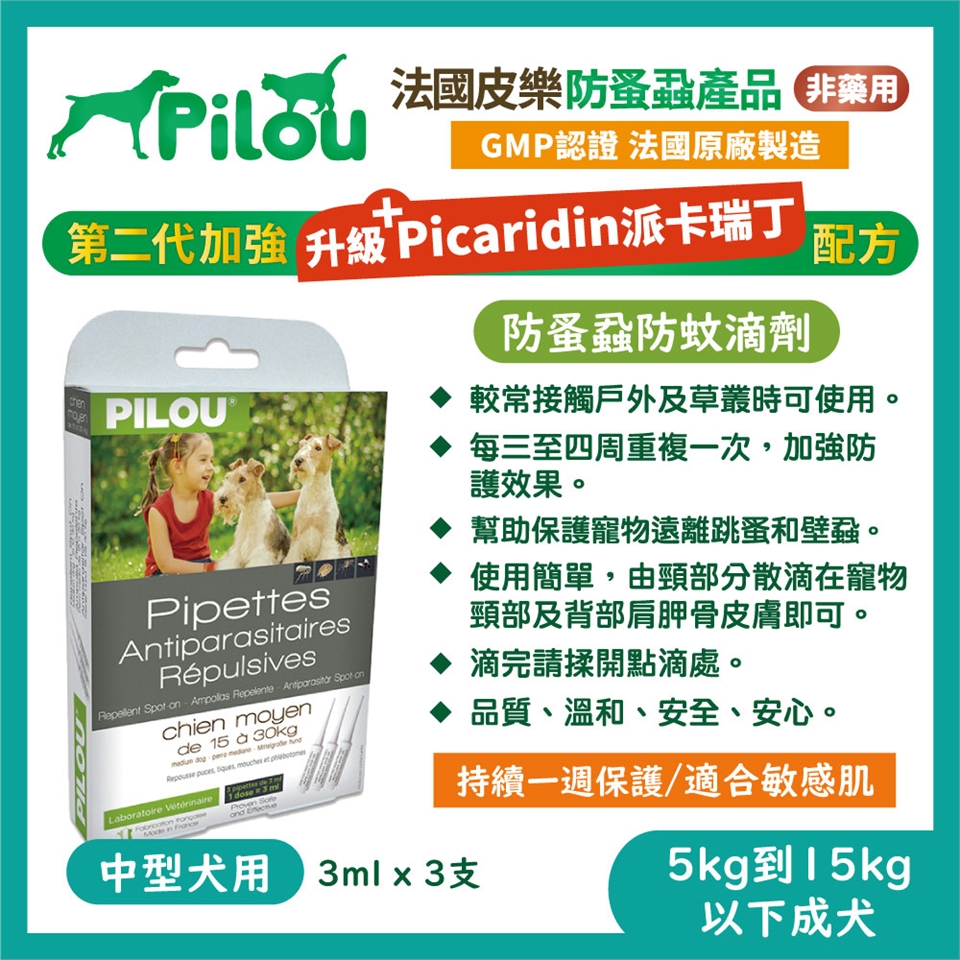 【Pilou 法國皮樂】第二代升級Picaridin配方 非藥用防蚤蝨滴劑 中犬用5kg以上15kg以下
