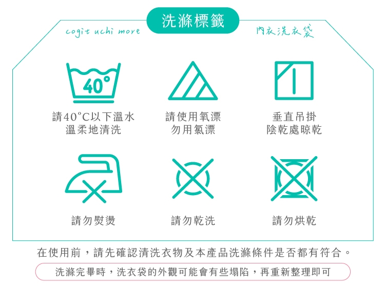 ●在使用前,請先確認清洗衣物及本產品洗滌條件是否都有符合。