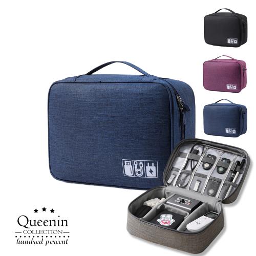 DF Queenin日韓 - 多功能便攜手機數據線充電器收納袋數碼包-共3色
