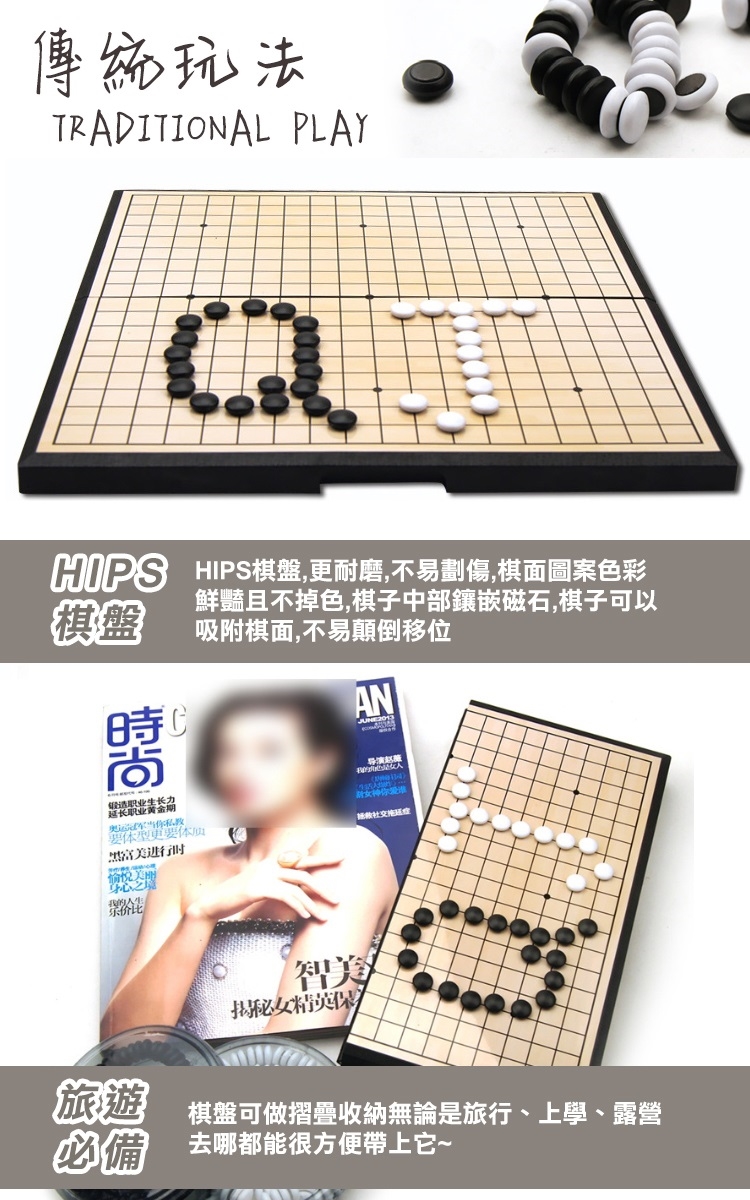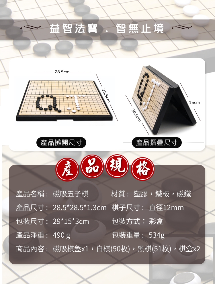 商品內容 : 磁吸棋盤x1,白棋(50枚),黑棋(51枚),棋盒x2
