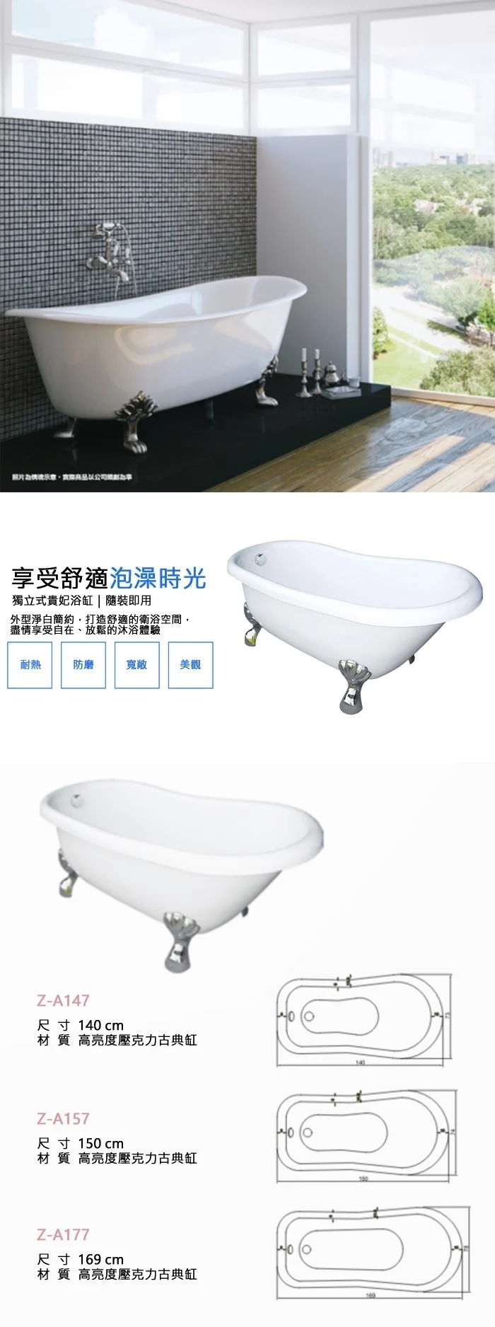 ◆ 大空間獨立式浴缸寬敞舒適 堅固耐用 享受舒適泡澡時光