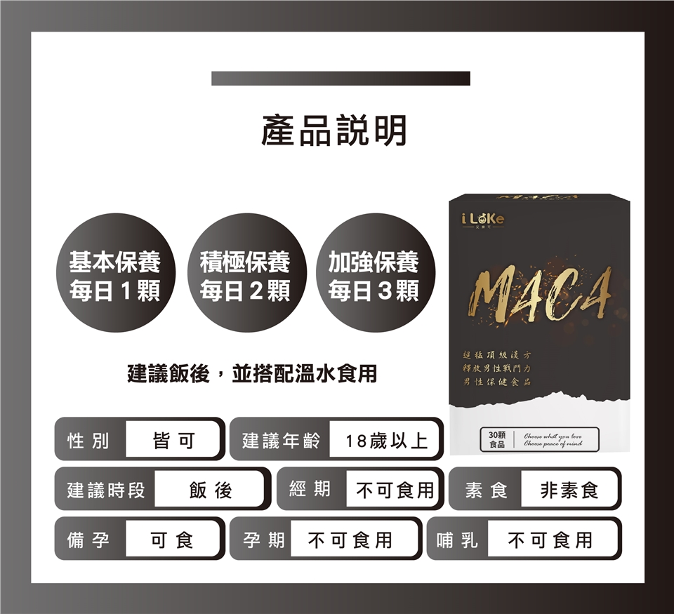 基本保養,每日2顆 ; 積極保養,每日4顆,於餐前30分鐘搭配溫開水食用