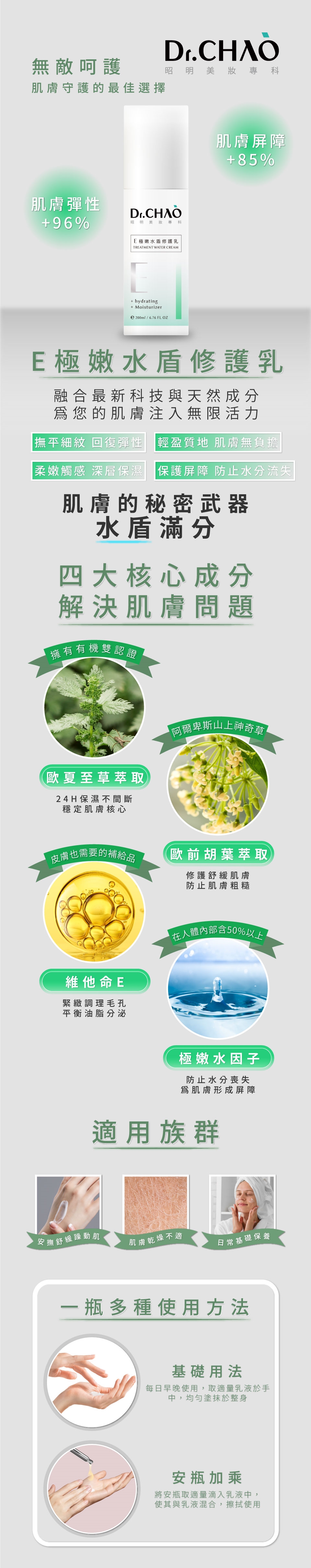 請先在手背做局部敏感測試,使用後若有過敏反應請即刻停止使用。