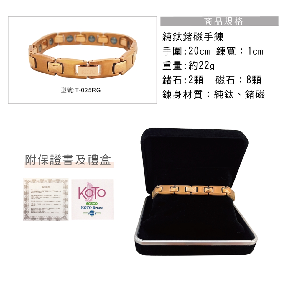 品名:KOTO原廠外銷 T-025RG 鍺磁健康鈦手鍊 玫瑰金限量款1入(高級絨盒精裝)