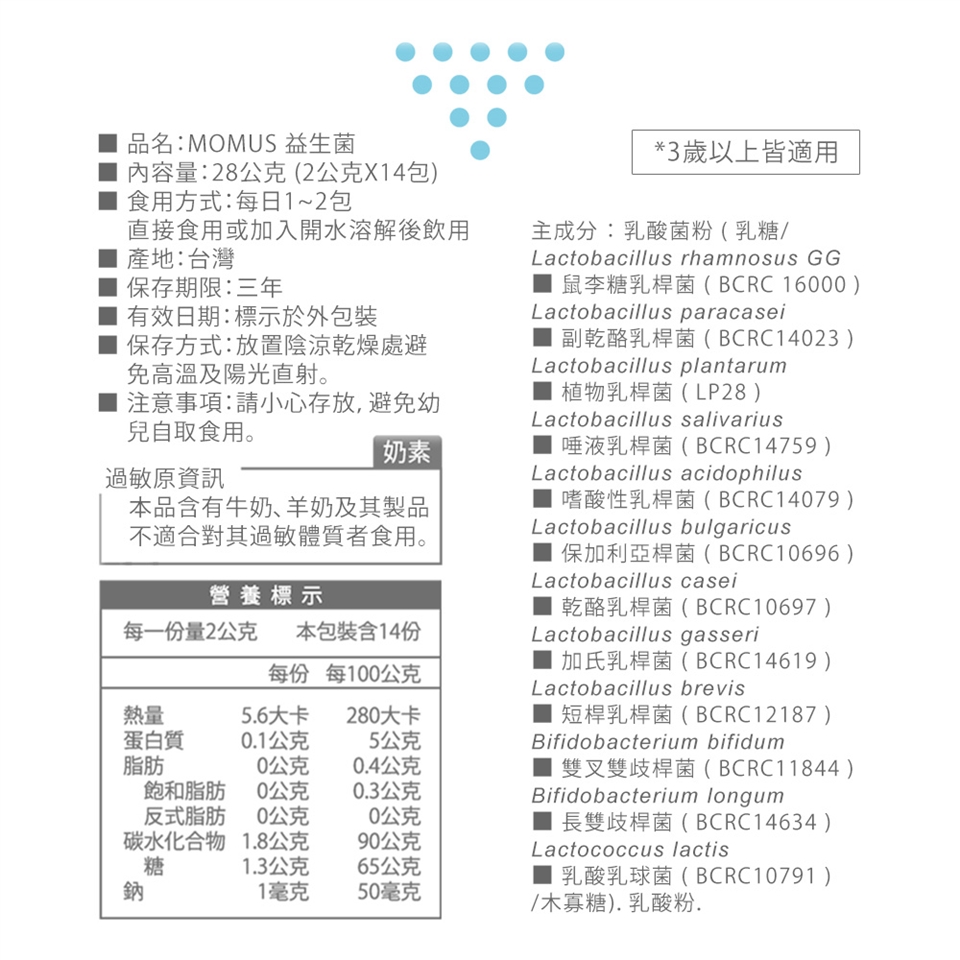 【商品名稱】MOMUS 益生菌(3歲以上皆適用)