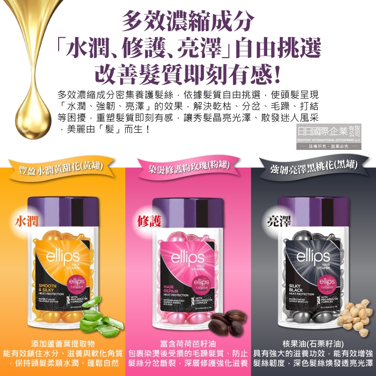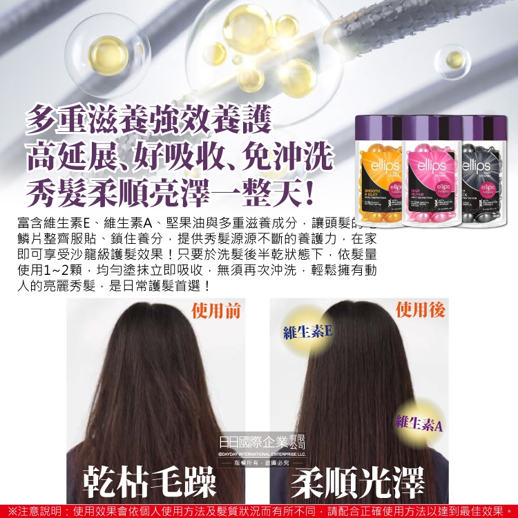 ●品名:沙龍級免沖洗滋養保濕光澤柔順熱保護維生素膠囊護髮精油
