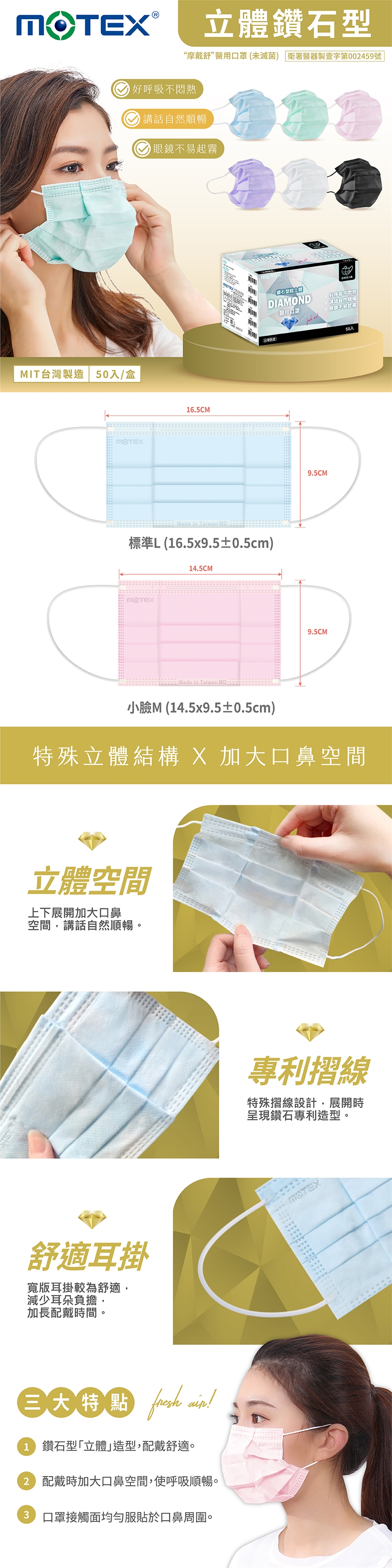 。手持口罩,將折疊處適度展開,成立體空間