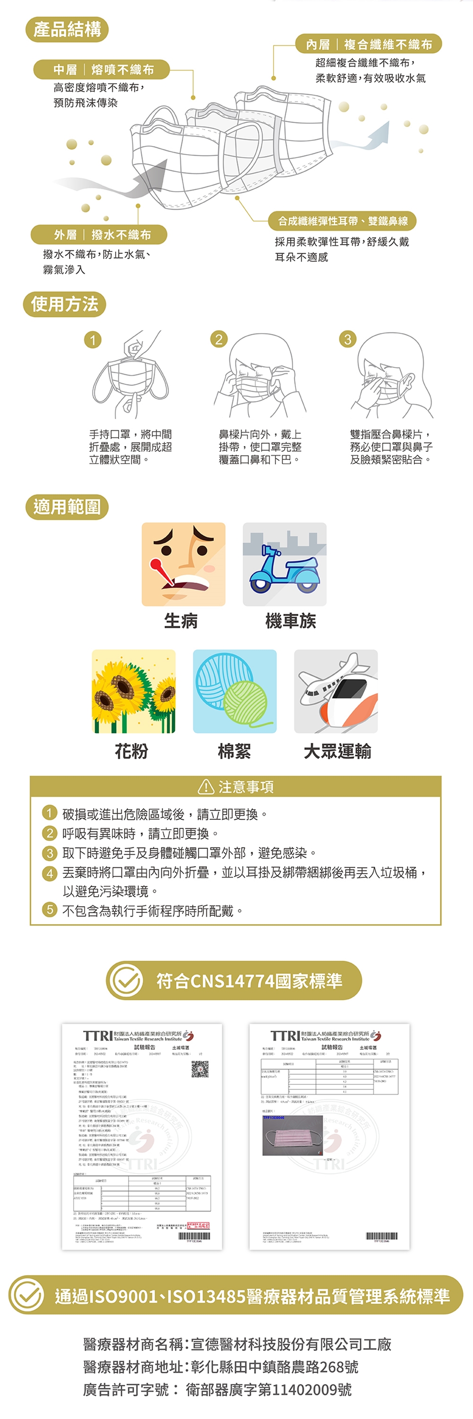 1.口罩破損時,請立即更換
