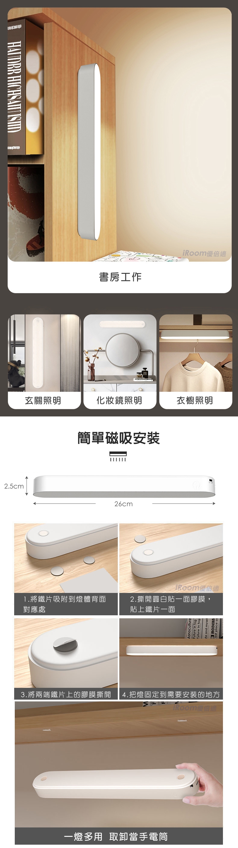 1.將鐵片吸附到燈體背面對應處