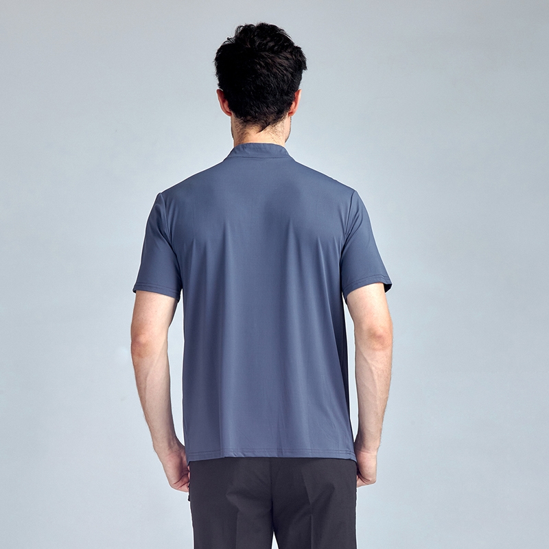 ZENO 夏日涼感速乾男款立領拉鍊短袖POLO衫‧灰藍