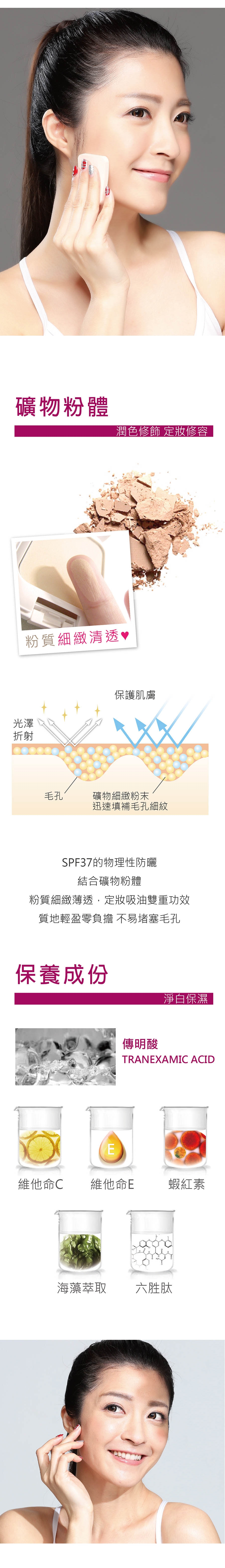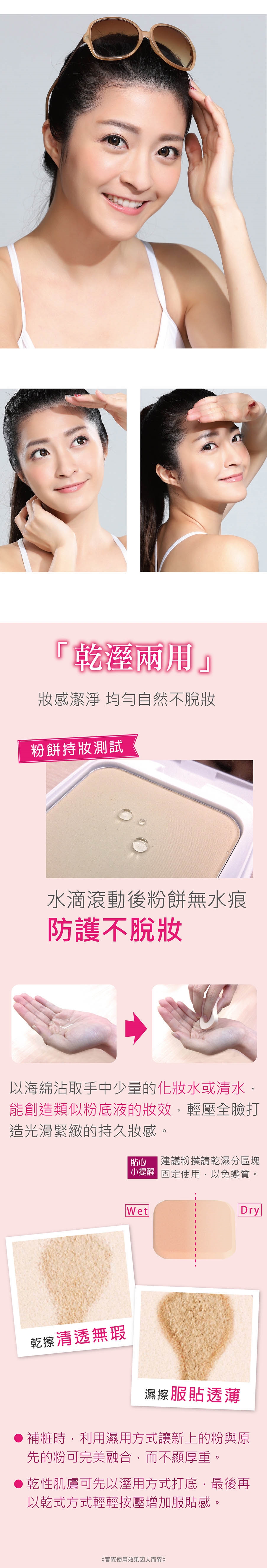以海棉粉撲沾取適量推勻於臉部,可在需要遮瑕處重複輕輕按壓即可。