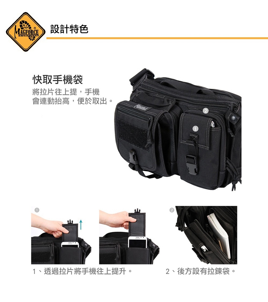 設有快取手機袋,主袋可放iPad,並設有多種空間可分類收納。