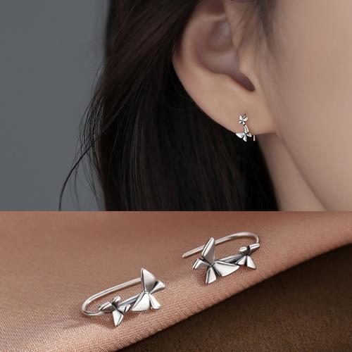 【Emi艾迷】韓系清新森林蝴蝶勾勒925銀耳環