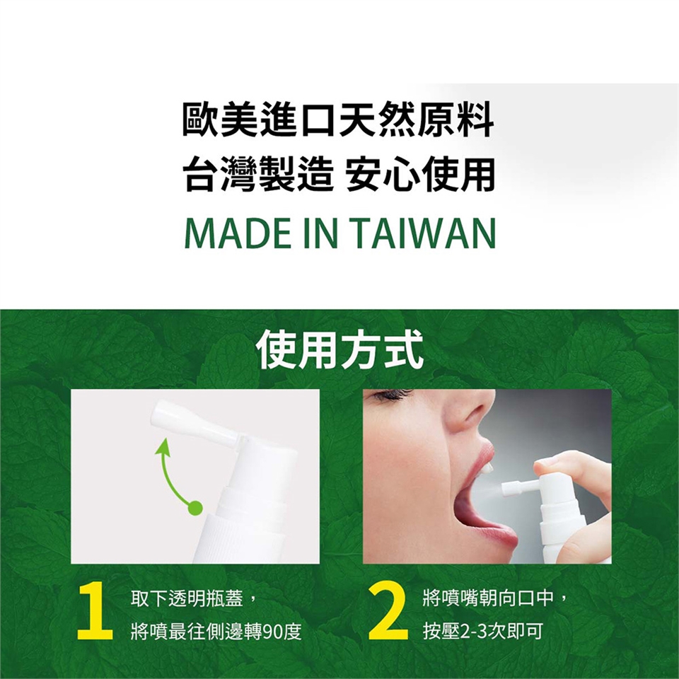 使用方式:將噴嘴朝向口中,按壓2-3次即可。