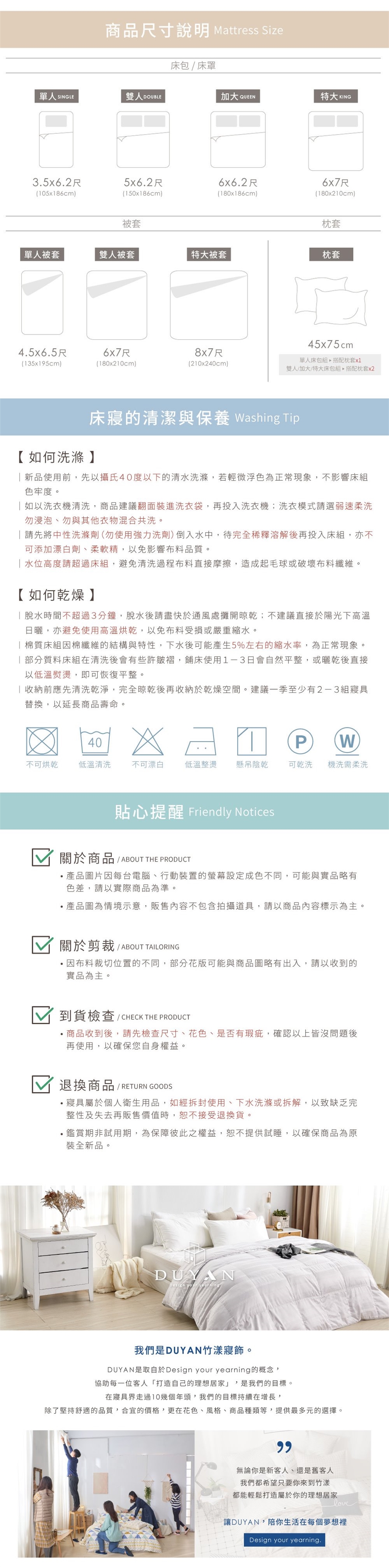 不可漂白、乾洗,並定期日曬達到消毒除溼效果