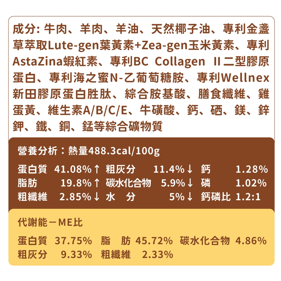 ⊙鮮嫩牛肉+鮮嫩羊肉製成,高蛋白質、低熱量、低脂肪,低敏食材