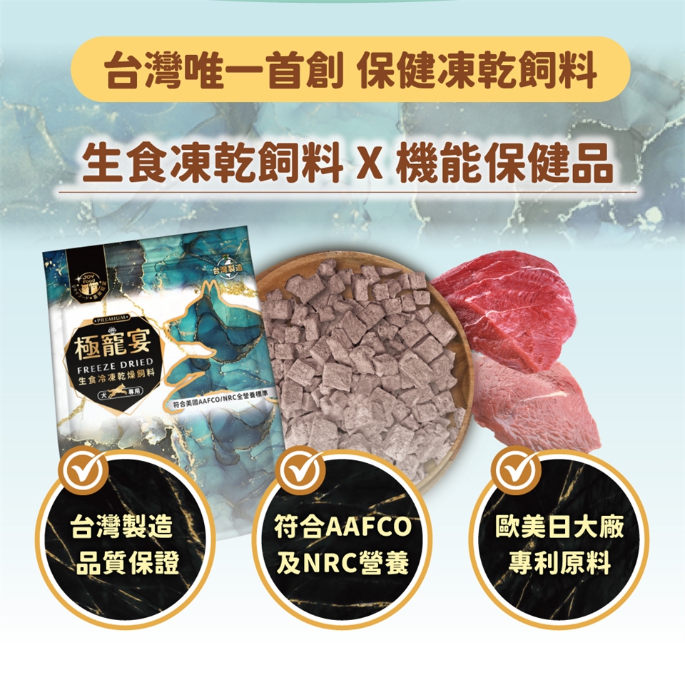 極寵宴 | 生食冷凍乾燥飼料 | 護眼關節健康 (1歲-8歲成犬活力配方-鮮嫩牛肉+羊肉)