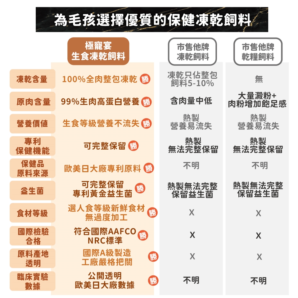 ✔ 符合美國AAFCO/NRC全營養標準,含豐富礦物質、維生素及必需胺基酸