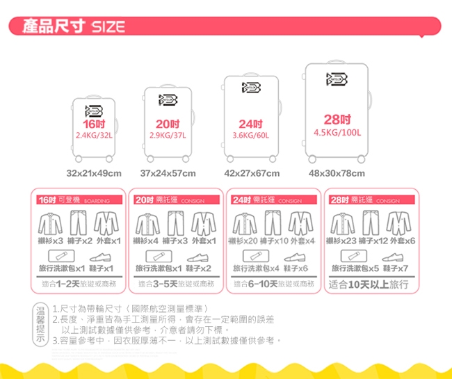 ※ 請勿用拉桿將箱子提起,提起箱子時請用上方或側面的把手;拉桿適用於配合輪子拖行時使用。