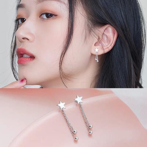 【Emi艾迷】韓系小清新星星圓珠垂墜925銀針耳環