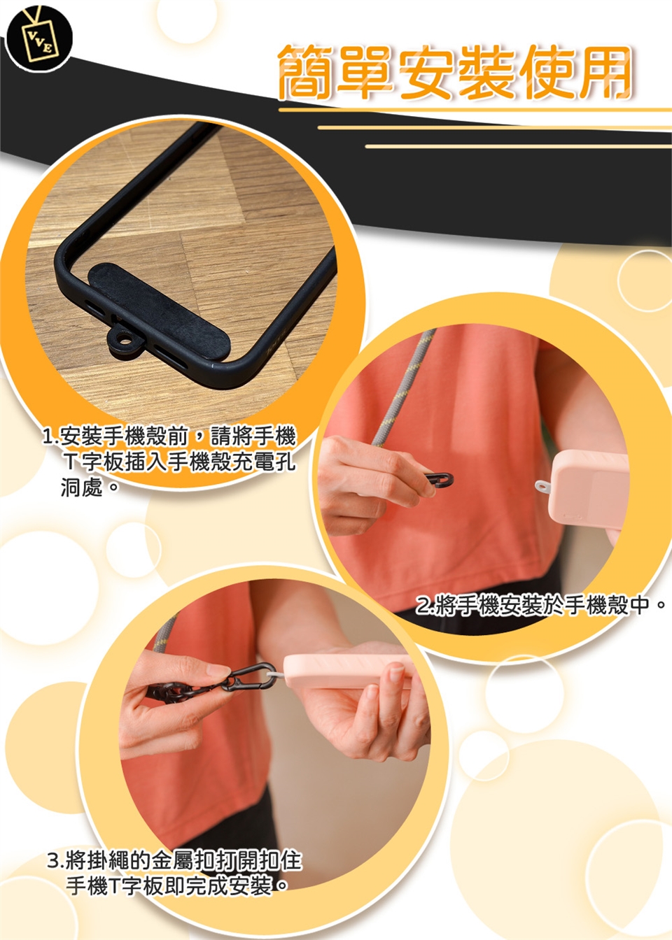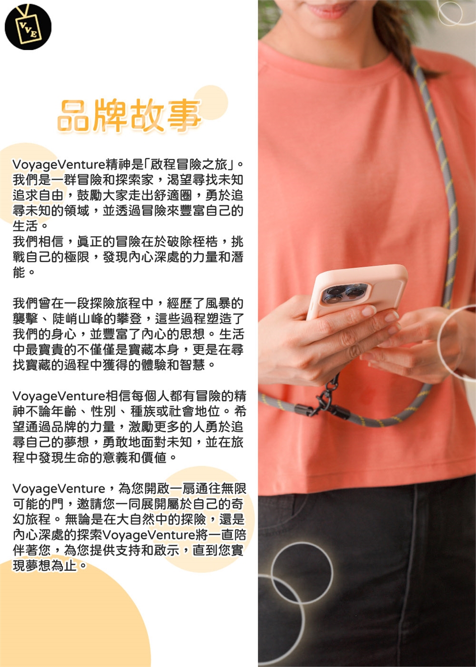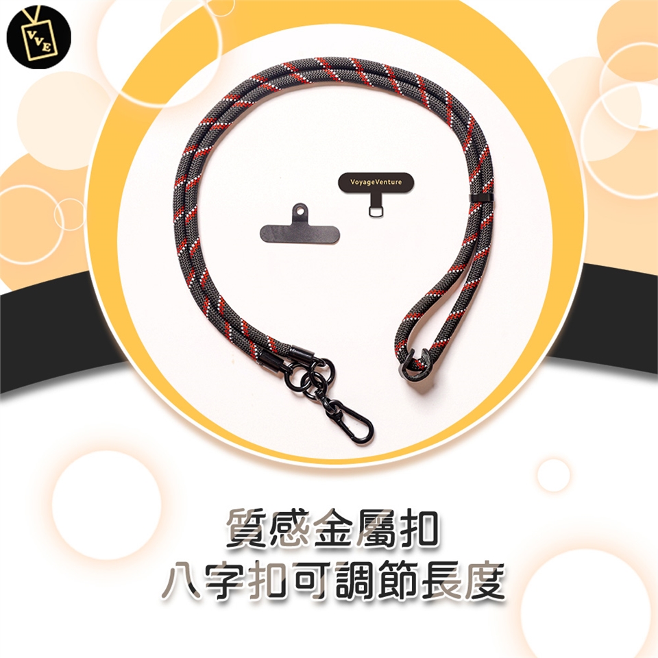 內容物: VoyageVenture時尚個性手機掛繩x1、T字板x1、金屬扣x1、長度調節扣x1、掛物結x1