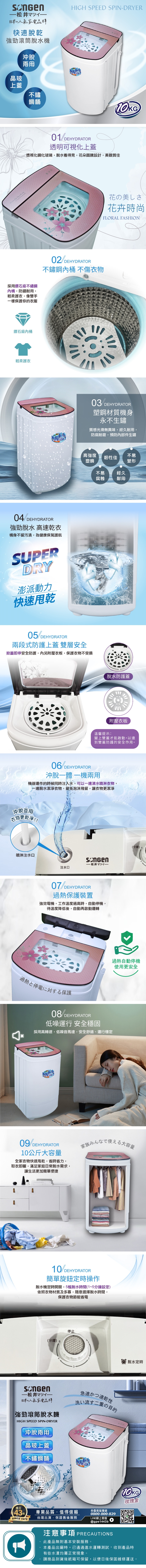【SONGEN松井】日系10KG不鏽鋼滾筒沖脫兩用強勁脫水機