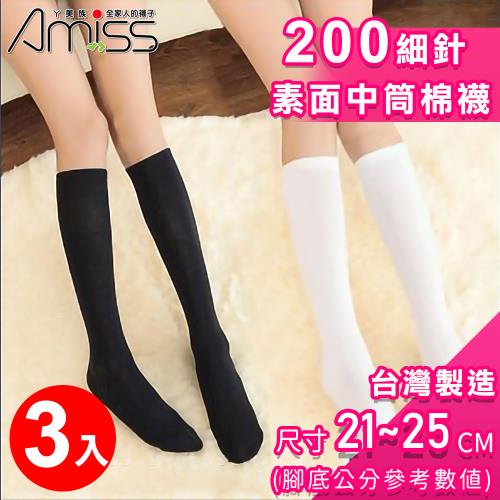 【Amiss】200細針素面中筒襪3入組(棉襪 膝下襪 學生襪 長襪 中筒襪/2021-21)