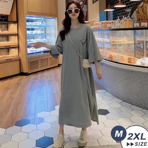 【LANNI 藍尼】★寬鬆印花開叉T恤連衣裙(中長款/連身裙/短袖)