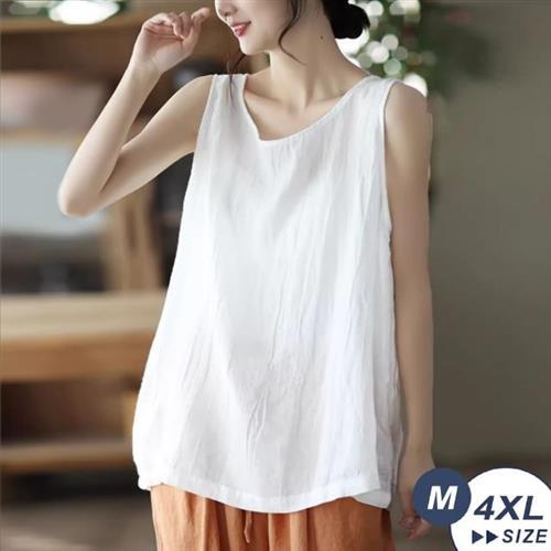 【LANNI 藍尼】★復古亞麻寬鬆背心上衣(無袖/棉麻/薄款)