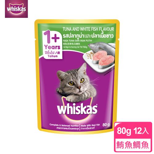 【Whiskas偉嘉】妙鮮包 鮪魚及鯛魚 80g*12入 寵物/貓罐頭/貓食