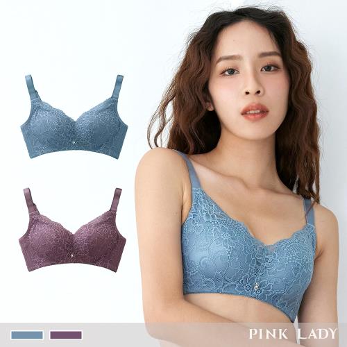 【PINK LADY】A-B罩杯 幽藍花徑 無鋼圈下厚上薄微加厚 單件內衣(女內衣/包覆/集中/蕾絲/雙膠條) 9030