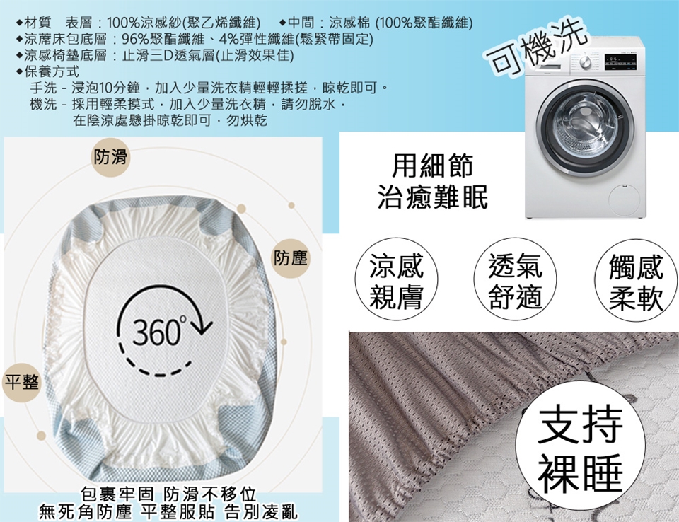 炎夏的夜晚總是覺得悶熱難入睡嗎?還是買了涼蓆才翻個身就聽到〝啪啪〞竹蓆斷裂的聲音,或是常常被夾到頭髮皮膚,讓您困擾!或是竹制涼蓆、草蓆、化纖涼蓆等夏日商品,因溼氣及汗水而發霉、髒汙難以清理、無法機洗讓你感到睡不安穩?