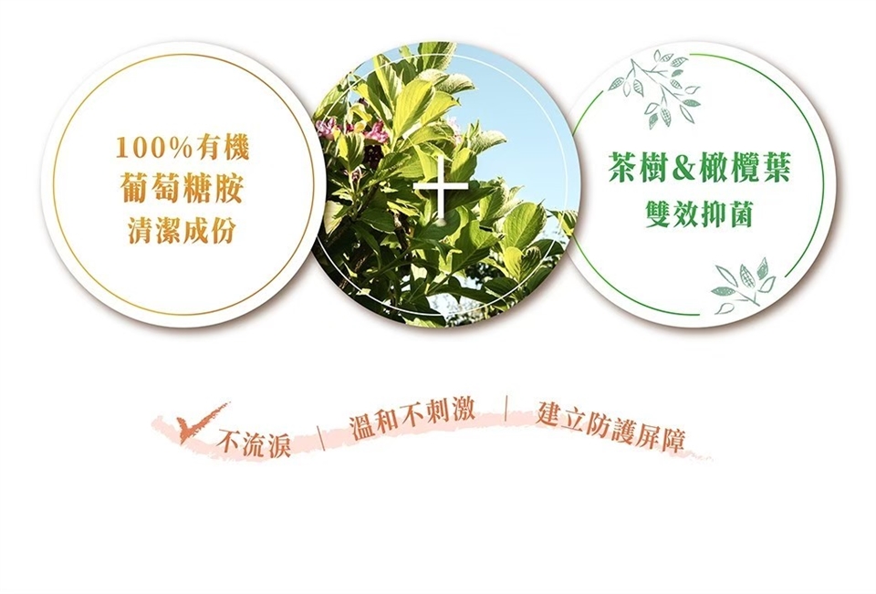 •使用茶樹精油和橄欖葉精萃的雙重植萃組合,雙效抑菌與除臭。