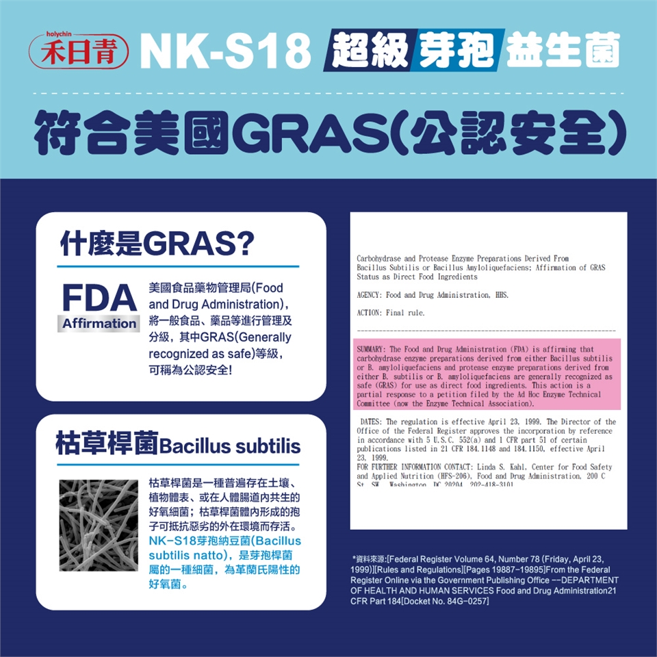 【成份】芽孢型納豆菌(美國專利菌株)、芽孢乳酸桿菌、植物乳桿菌、乳雙歧桿菌、短雙歧桿菌、乾酪乳桿菌、副乾酪乳桿菌、醱酵乳桿菌、鼠李糖乳桿菌、嗜熱鏈球菌、嗜酸乳桿菌、長雙歧桿菌、兩歧雙歧桿菌、乳酸乳桿菌、羅伊氏乳桿菌、瑞士乳桿菌、果汁粉(含砂糖、麥芽糊精、橘子濃縮汁、氧化澱粉(樹薯)、檸檬酸、檸檬酸鈉、蘋果酸、香料、β-胡蘿蔔素) 、麥芽糊精、黃豆粉、酵母粉、赤藻糖醇(甜味劑)、玉米澱粉、香料粉、DL-蘋果酸、木寡糖。