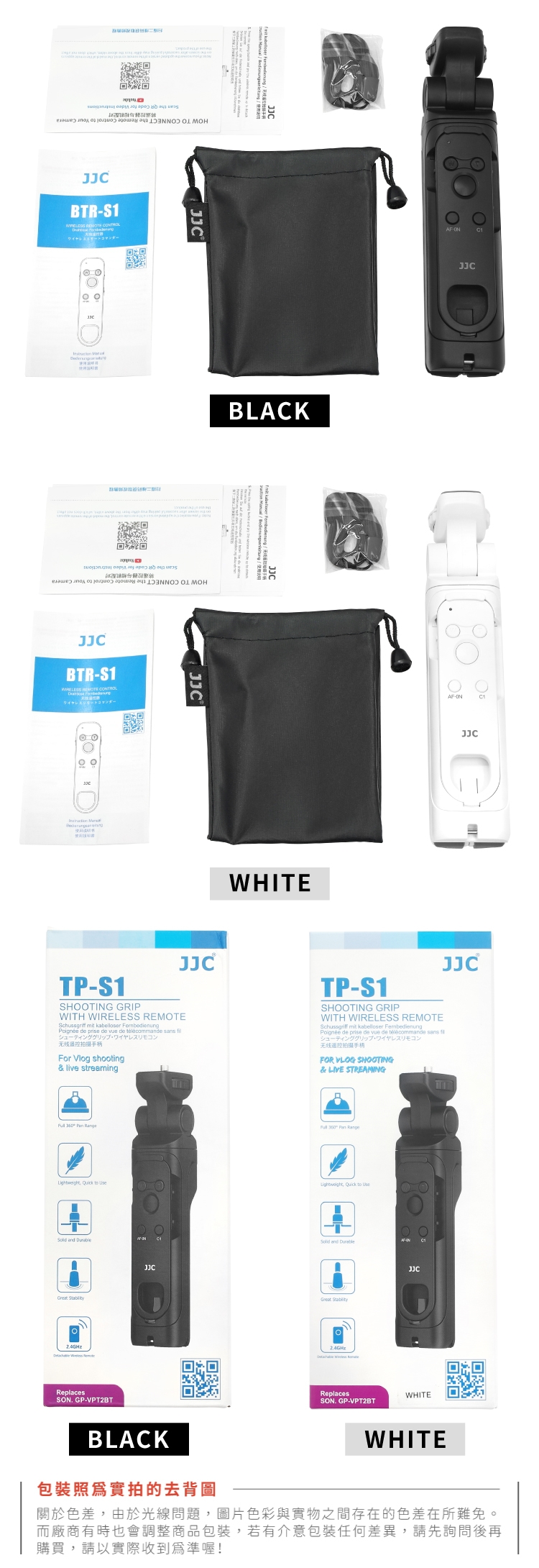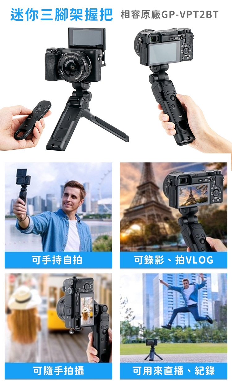 ●【品名】JJC副廠Sony索尼2合1藍牙GP-VPT2BT+無線握把手RMT-P1BT錄影快門遙控器TP-S1迷你三腳架(適FX30 a1II a9 II a7 IV R S III a6700 ZV-1 ZV-E1 RX100M7)