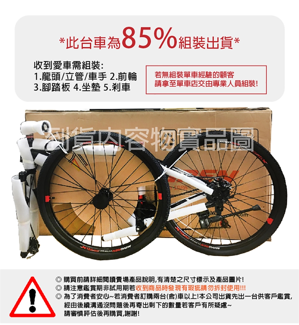 ● 此台車為85%組裝出貨,請將車拿至車店交由專業人員組裝!