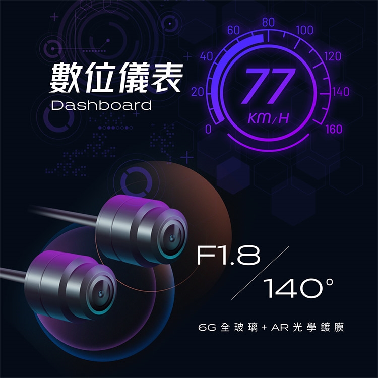 · 140 度廣角鏡頭 / F1.8光圈 / 6G + AR光學鍍膜