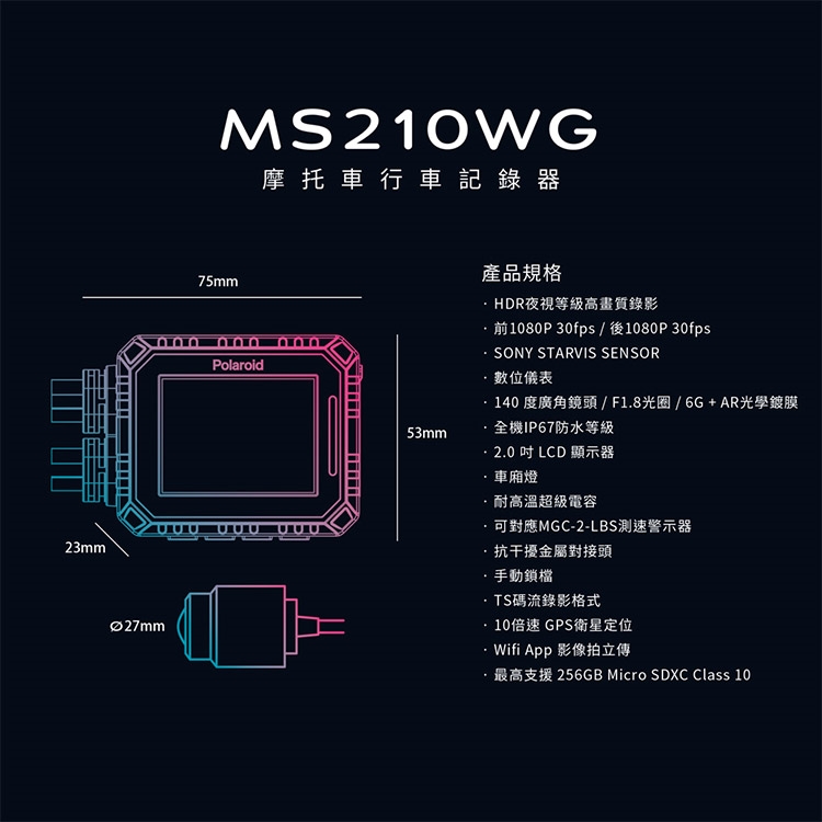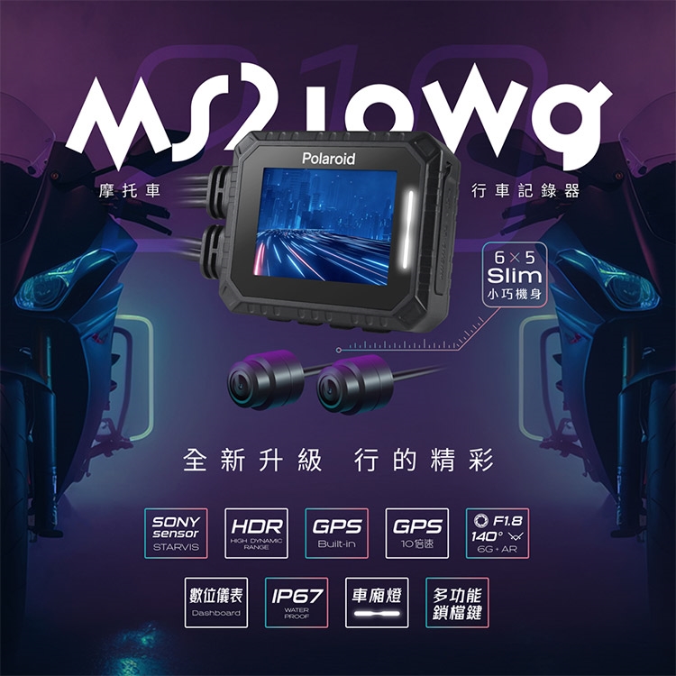 品名:【Polaroid寶麗萊】MS210WG 新巨蜂鷹 機車HDR夜視雙鏡頭行車記錄器