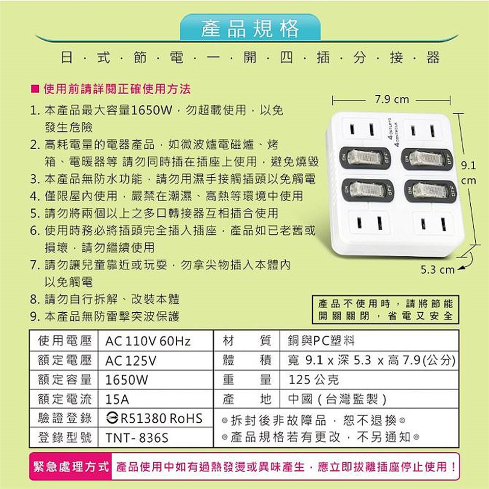 外殼全PC材質,阻燃防火耐高溫,使用安全性最高