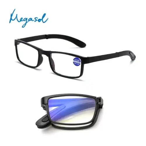 【MEGASOL】抗UV400便攜濾藍光摺疊老花眼鏡(經典黑色中性矩方框-KQ-5296)