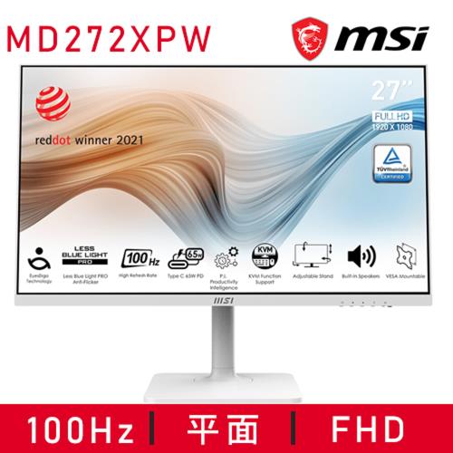【微星】Modern MD272XPW 美型商務螢幕 (27型平面 / HDR / 100Hz / 護眼設計)