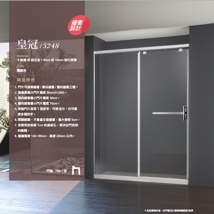 皇冠5428 鋁合金 無緩衝式淋浴門