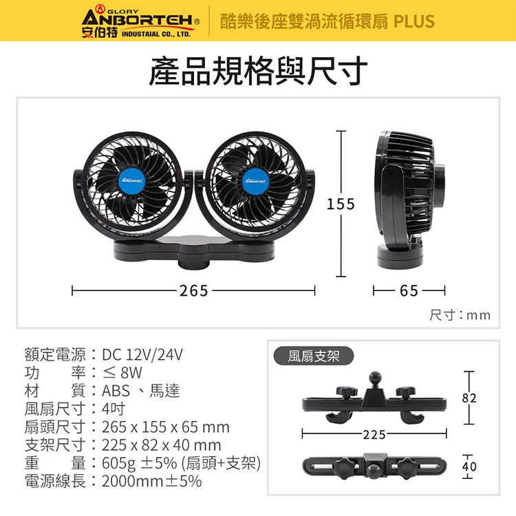 商品品名:【安伯特】酷樂後座雙渦流循環扇PLUS