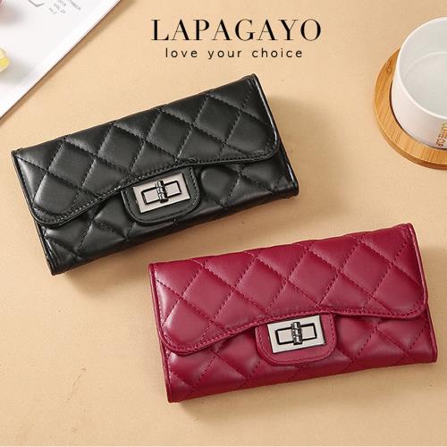 lapagayo 法系名媛菱格皮質手拿包-預購