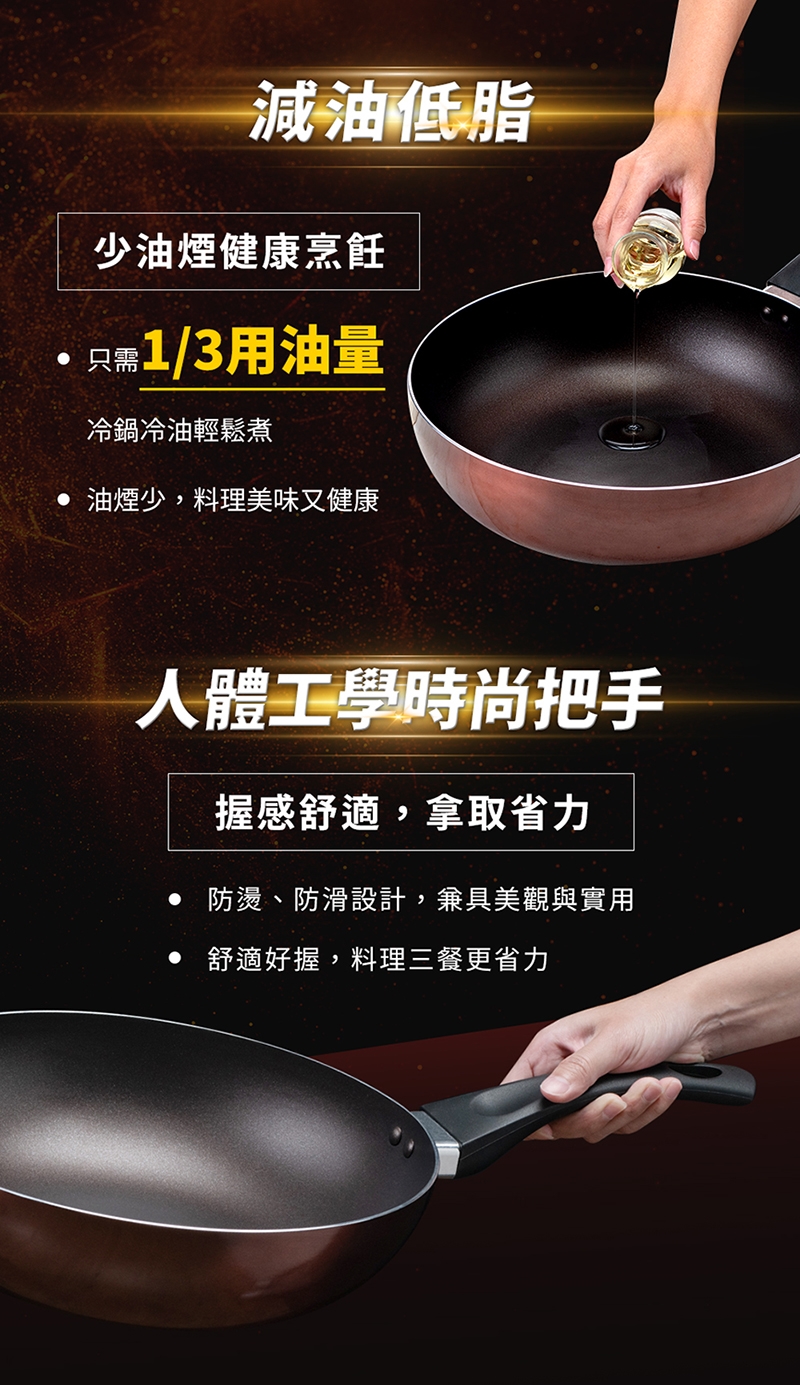 材質:鍋身/高級合金+高科技不沾材質(耐熱260℃)