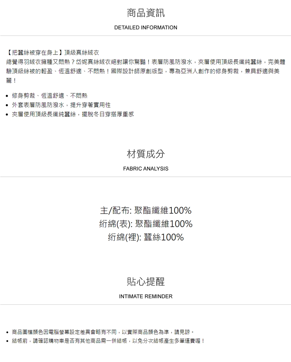 ► 請避免於太陽直射處曝曬,避免蠶絲纖維損壞。