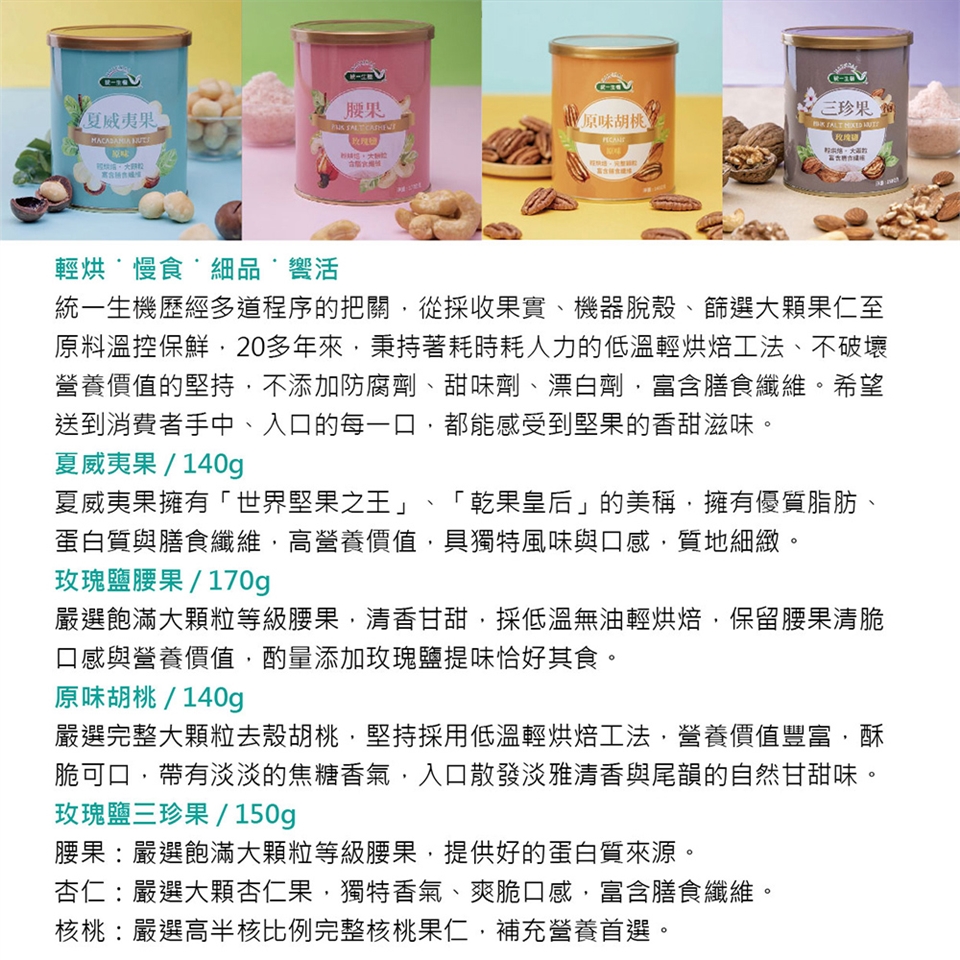 * 過敏原資訊: 本產品含堅果,不適合其過敏體質者食用。本生產線亦生產含花生、牛奶、芝麻、含麩質之穀物及大豆的產品。