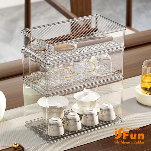 iSFun 堆疊透視 桌上大容量化妝品收納盒/長款小號1.9L