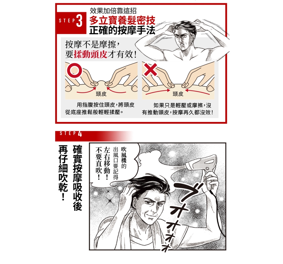 以雙手取適量,加入清水起泡後塗抹於頭皮及髮絲,並於頭皮加強按摩,最後以清水洗淨。